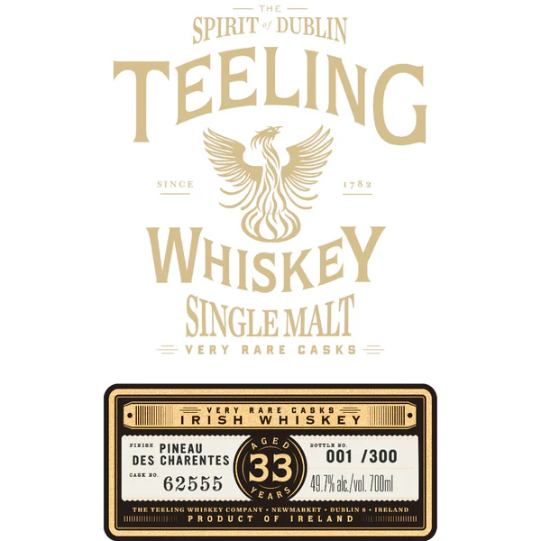 Bottled at 46% ABV and non-chill filtered, Teeling 33 Year Old Pineau des Charentes Finish is a rare collector’s gem and an indulgence for whiskey connoisseurs seeking an exceptional, nuanced dram.