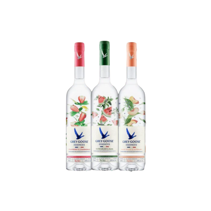 Refresh your spirits collection with the Grey Goose Vodka Essences Bundle, a vibrant trio of botanically infused, ultra-premium vodkas that bring a fresh twist to a classic favorite. Crafted in France using Grey Goose’s signature soft winter wheat and pure spring water, this collection combines natural fruit and botanical flavors with the unmatched smoothness the brand is known for.