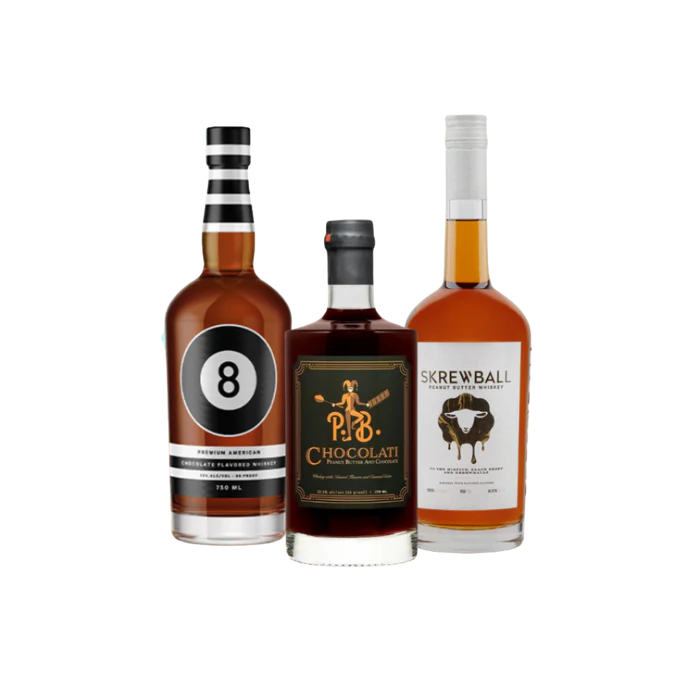 Featuring a curated lineup of sweet and indulgent expressions, this bundle may include favorites like Skrewball Peanut Butter Whiskey, Bird Dog Salted Caramel, Ole Smoky Banana Pudding, or Chocolate-flavored bourbons—each offering a unique take on whiskey that’s perfect for sipping straight, pouring over ice cream, or mixing into dessert-style cocktails.